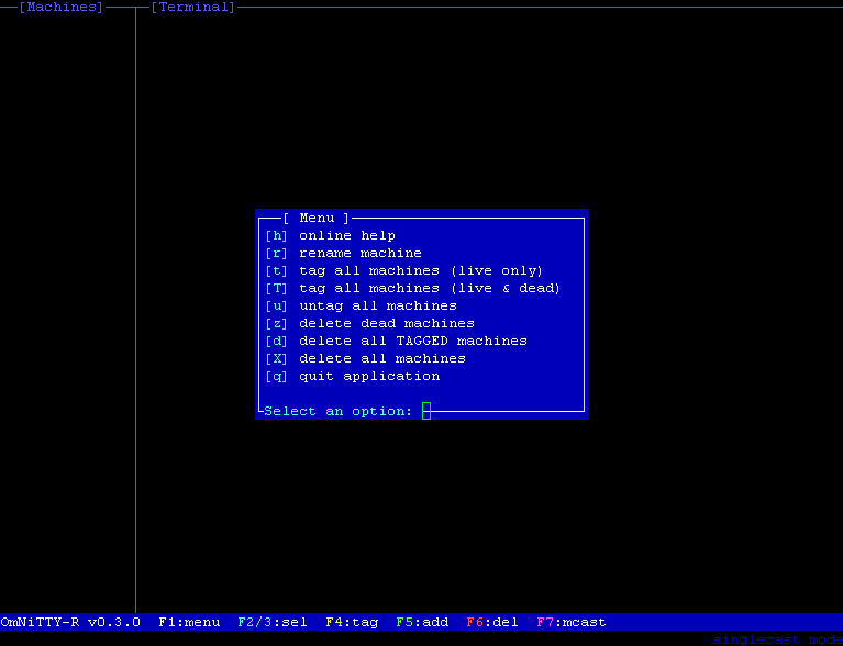 在实际操作中可按F2/F3来选择相应的主机界面,按F4标记或取消标记一台主机,用F6来删除一台主机,根据实际情况具体应用。
