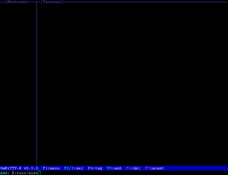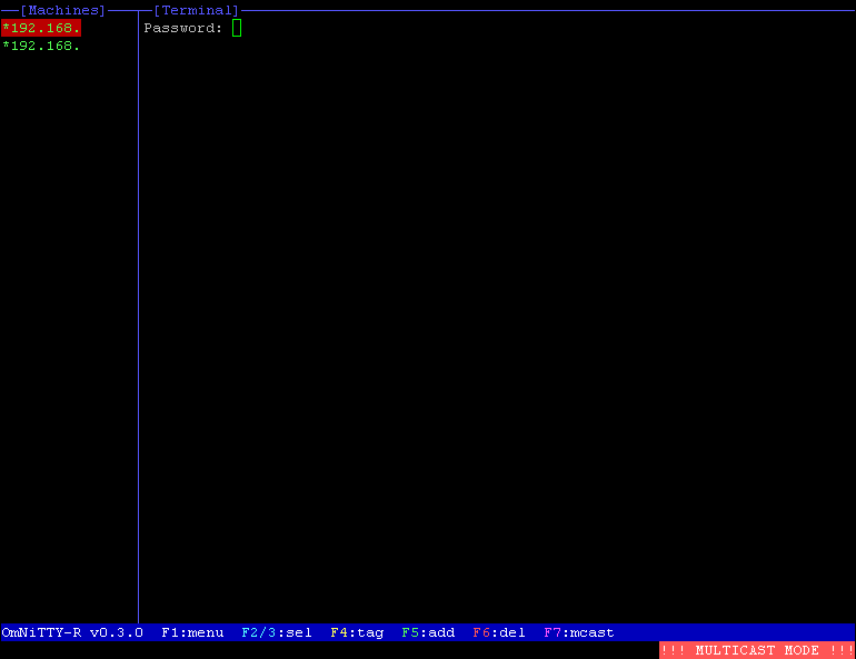 输入主机列表后,按F1—t选择全部主机(选择的主机名为绿色),再按F7广播操作命令,即操作对选中的所有主机生效。执行广播命令要慎重!!!