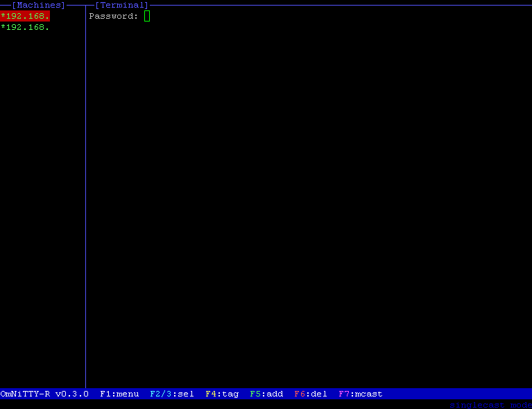 注意:omnitty是基于ssh的批量登陆操作程序,所以在执行操作时必须要注意ssh的用户权限,以免造成不可估量的损失。